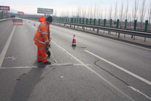 養(yǎng)護(hù)工區(qū)開(kāi)展春季路面灌縫工作
