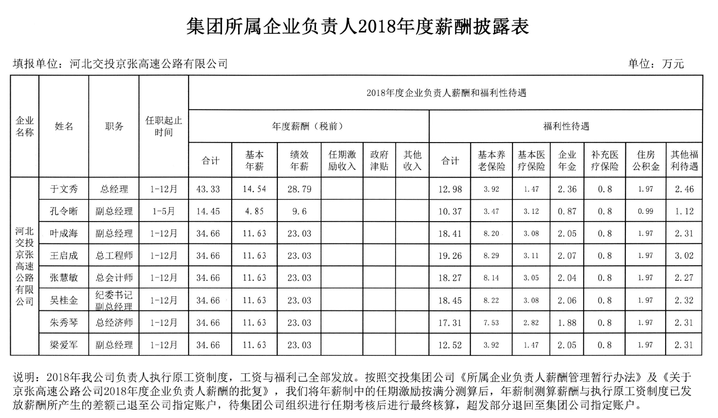 集團所屬企業(yè)負責人2018年度薪酬披露表