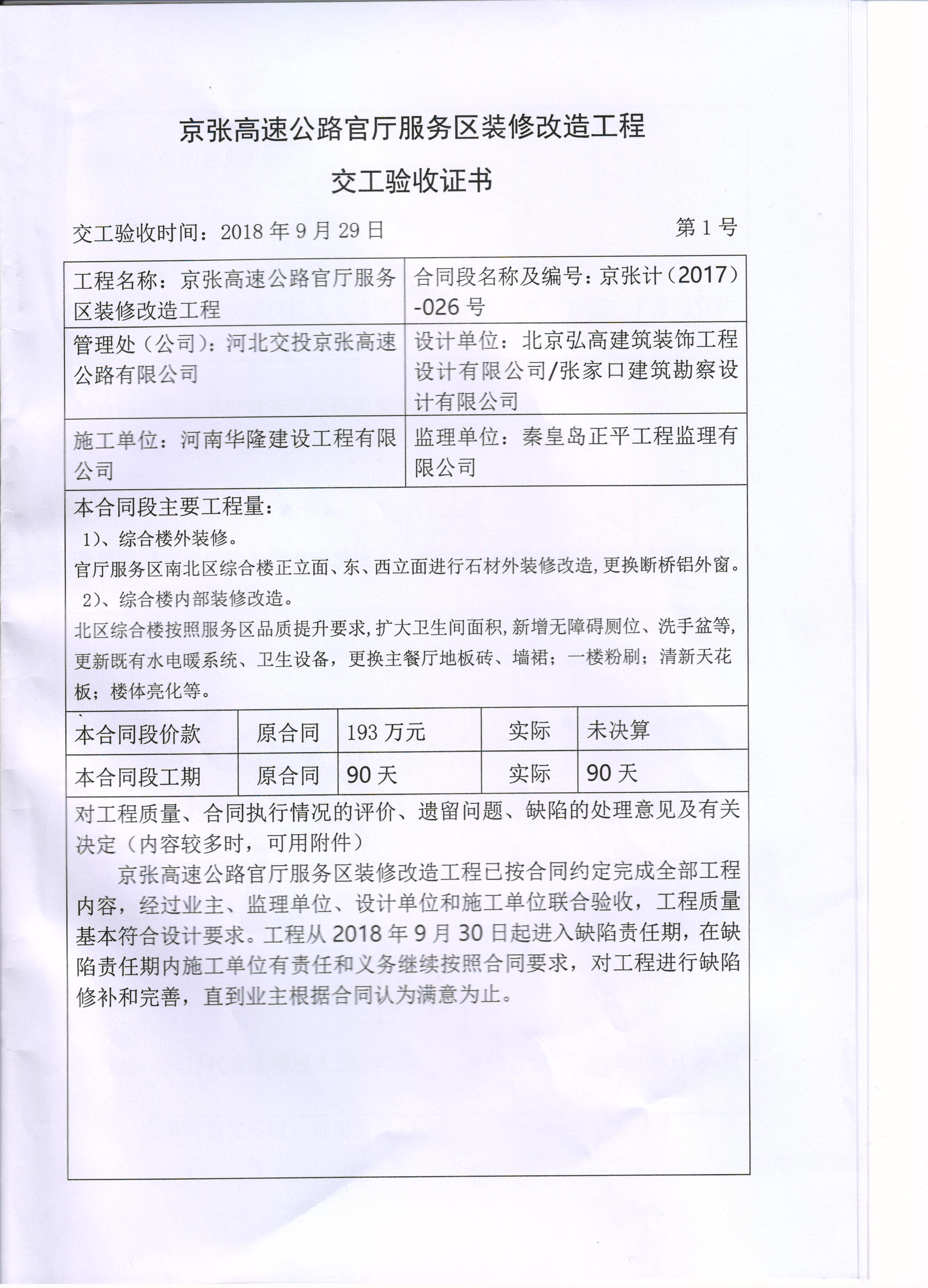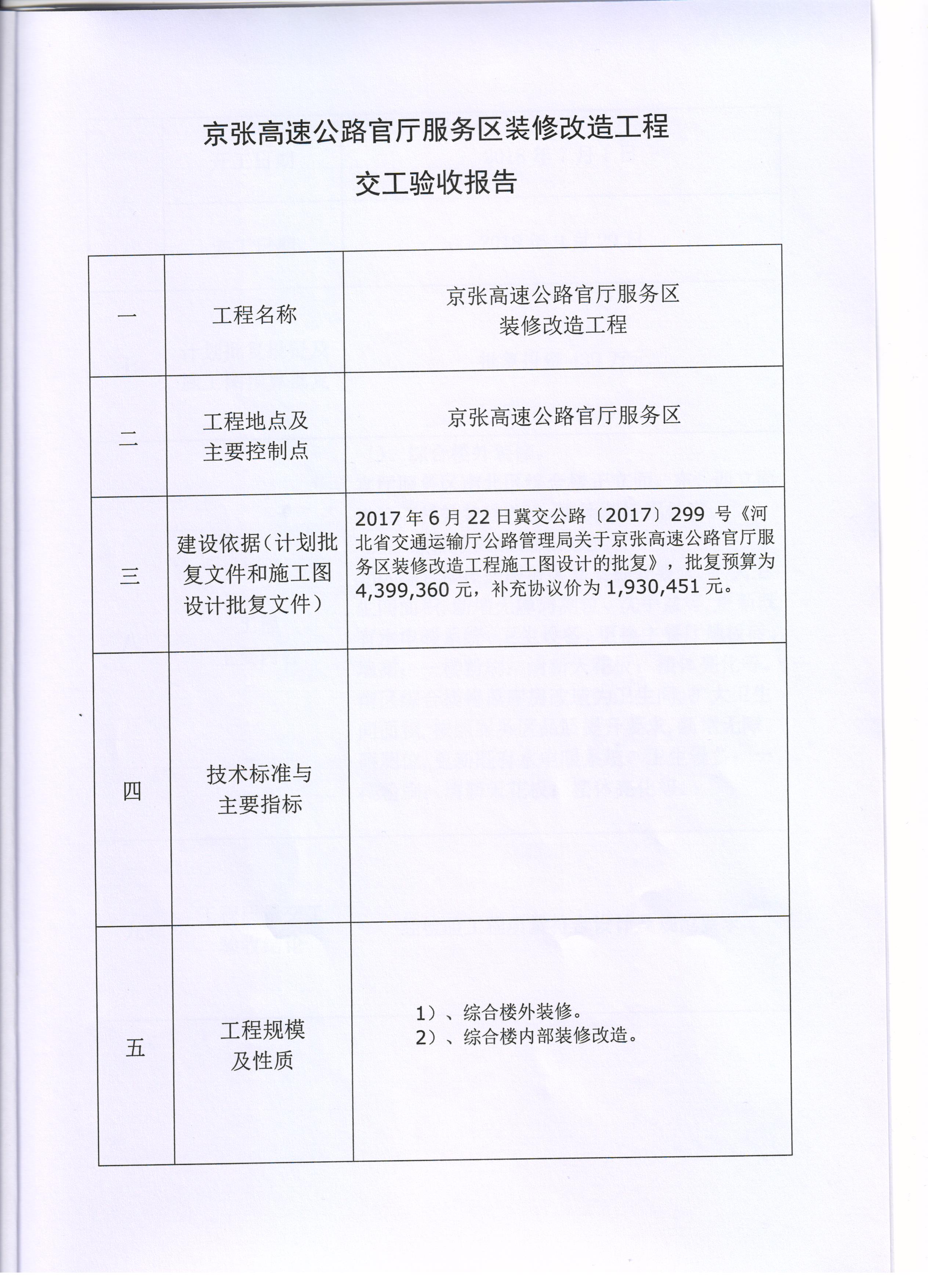 京張高速公路官廳服務區(qū)裝修改造工程交工驗收報告